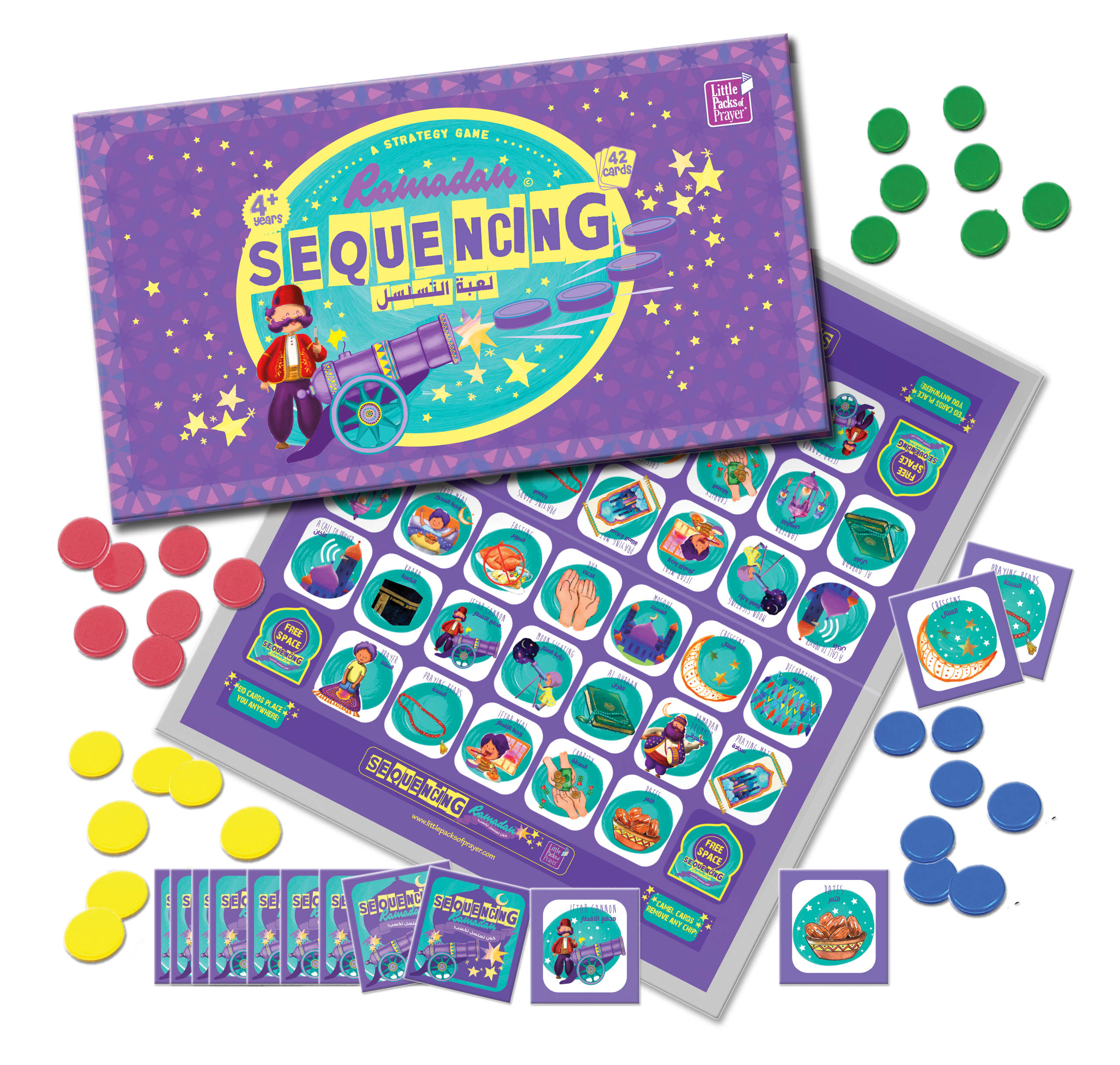 Double the fun!, since there are 21 pairs of ramadan illustrated vocabulary cards, you can use them separately after finishing the sequence board game as a memory matching game and enjoy a prolonged playtime for the whole family!